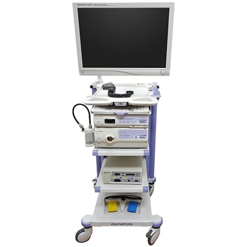 The Olympus CV-180 complete tower system is equipped with a high-resolution HDTV imaging capability. This helps ensure the best possible image quality for endoscopic and laparoscopic procedures. The CV-180 endoscopy tower is compatible with EVIS 100, 130, 140 Series, and EVIS EXERA 160 Series scopes as well as bronchoscopes and surgical endoscopes.